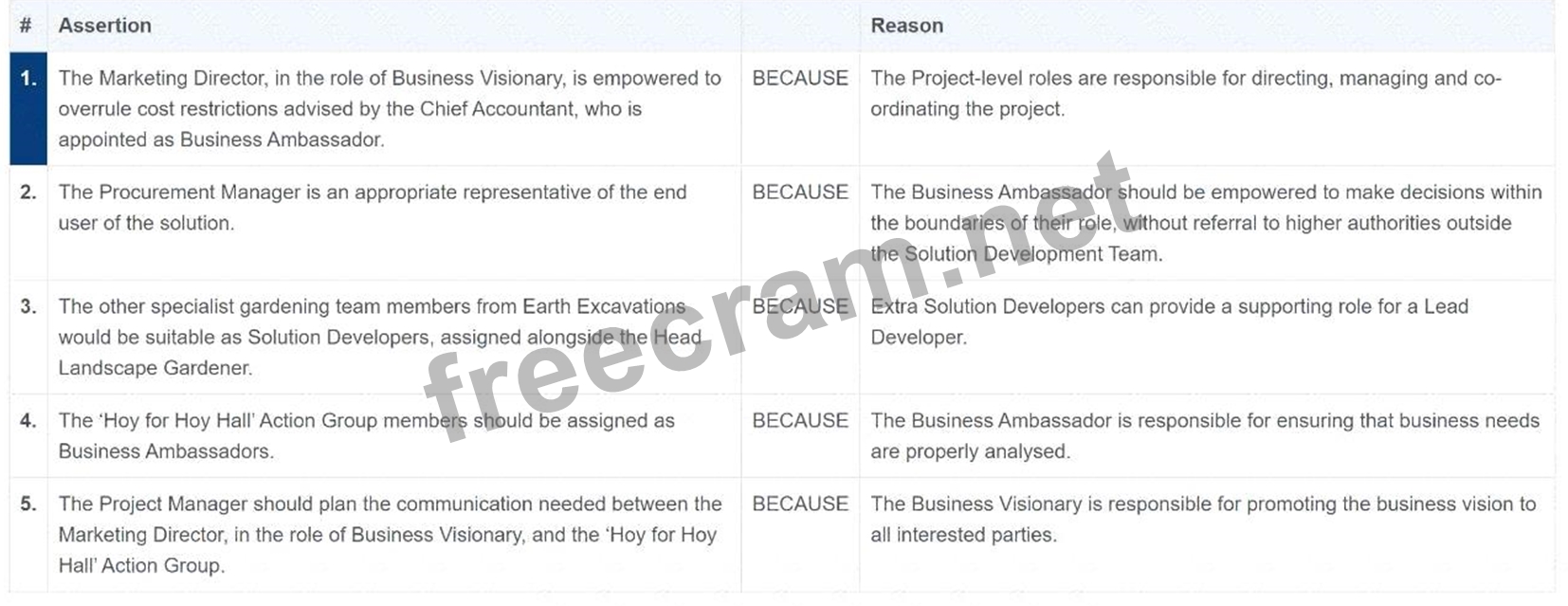 * Rationale: The Procurement Manager, as part of the operational team, could represent the end user. However, the reason given talks about the empowerment of the Business Ambassador, which does not directly explain why the Procurement Manager is a representative of the end user.