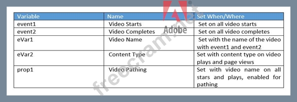 The analyst has been provided the video metrics and variables shown in the exhibit as a part of a solution design reference (SDR). Given the complete implementation shown, what reporting option is available within Adobe Analytics?