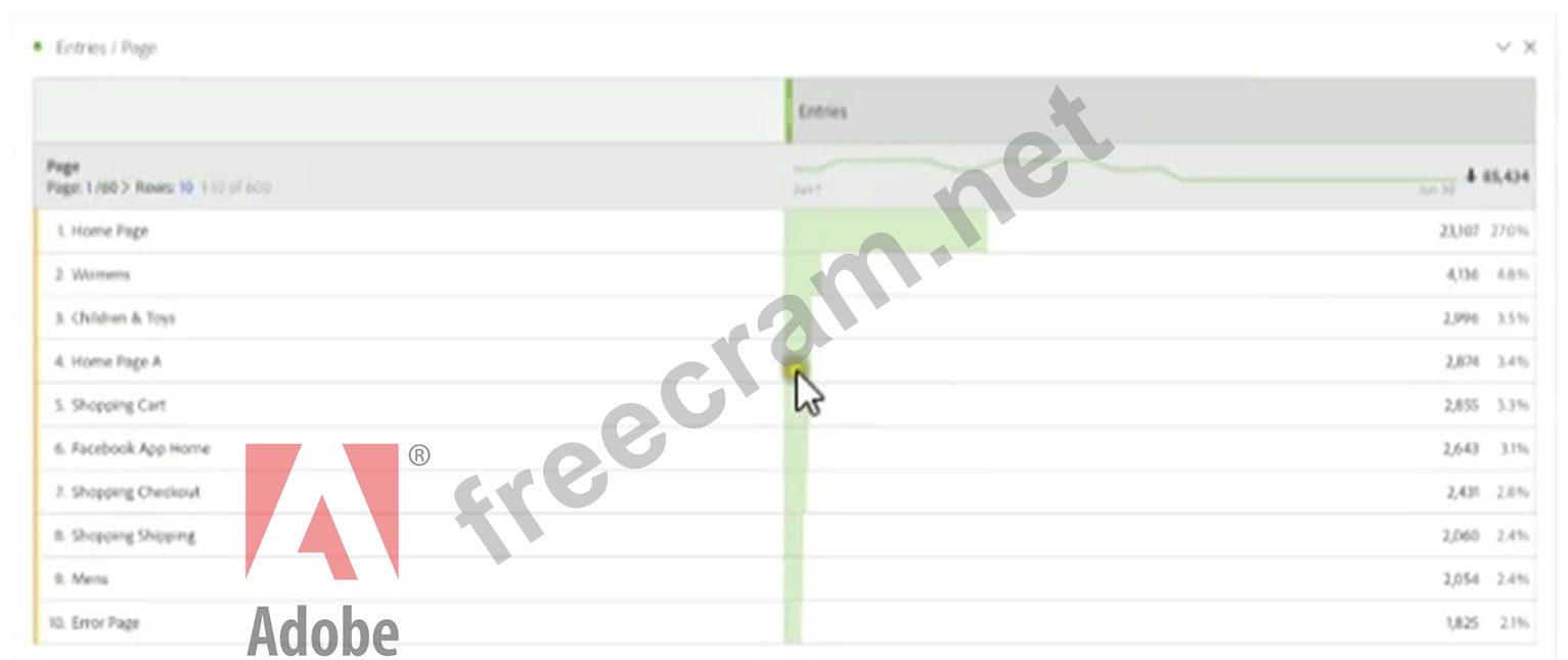 Analyzing the data in the image below, a data analyst verifies that the report of ''entries'' per page, shows that the HomePage A'' page is responsible for only 3.4% of the total entries to the site: Analyzing the data in the image below. A data analyst verifies that the report of ''entries'' per page, shows that the HomePage A'' page responsible for only 4.4% of the total entries to the site: Based on both images and knowledge on the standard metrics of Adobe Analytics, which statement is correct?