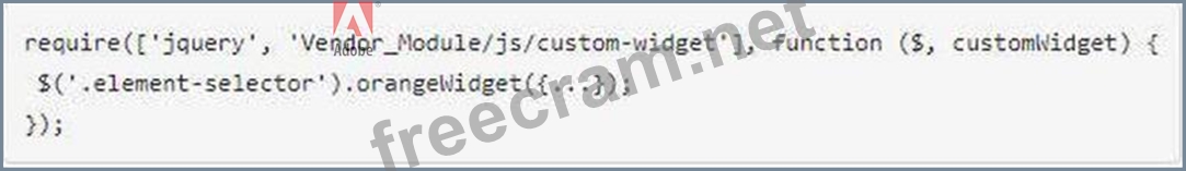 An Adobe Commerce developer has created a widget Vendor_Module/js/custom-widget.js