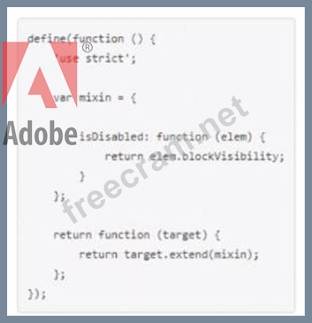 An Adobe Commerce developer needs to create a JavaScript mixin to add the isDisaeied function. Select two options to create the mixin based on a Ul Component. (Choose two.) A)