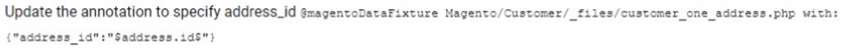 An Adobe Commerce Architect is reviewing api-functional test code. Some tests send errors to indicate that the customer address does not exist. The test codes show the following: Which steps should the Architect take to fix the test errors?