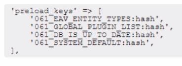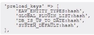 This will allow Redis to preload the cache keys that are loaded on every page request, such as eav_entity_types, GLOBAL_PLUGIN_LIST, DB_IS_UP_TO_DATE , SYSTEM_DEFAULT. The keys should include the database prefix (061_) and the :hash suffix for L2 caching. The :hash suffix tells Redis to load only the hashes from Redis and the data from local storage. This will reduce the pressure on Redis and improve the performance of Magento.