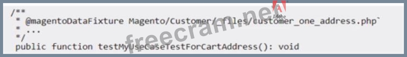 An Adobe Commerce Architect is reviewing API-functional test code. Some tests send errors to indicate that the customer address does not exist. The test codes show the following: Which step should the Architect take to fix the test errors?