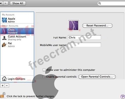 You perform a default installation of Mac OS X v10.6, and then create an account for Chris.