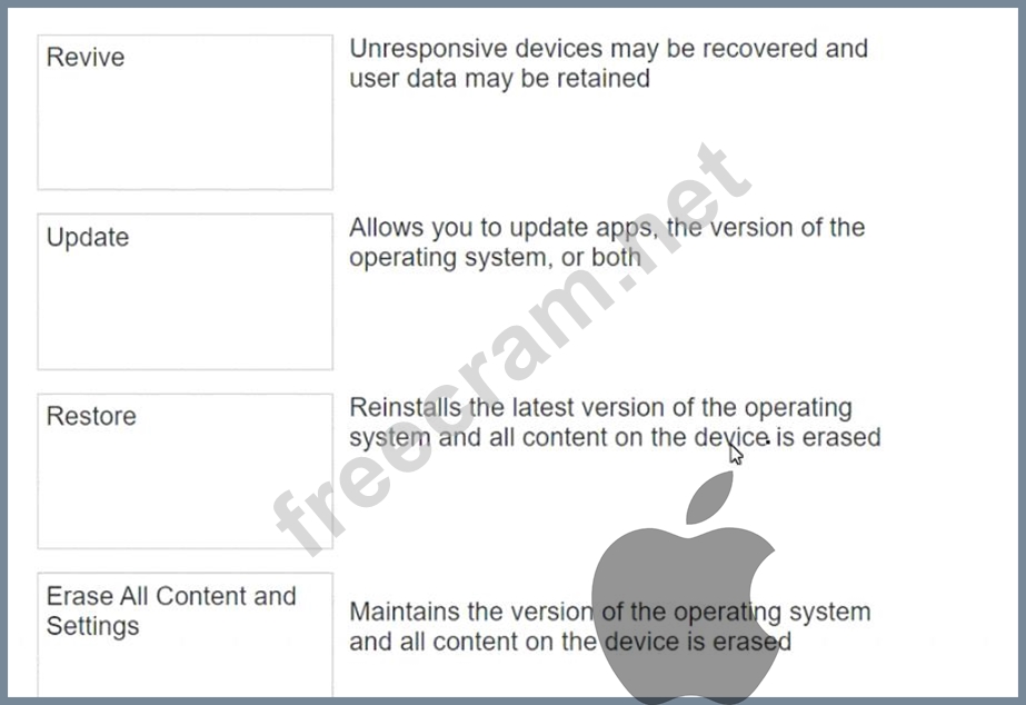 Valid Apple-Device-Support Dumps shared by ExamDiscuss.com for Helping Passing Apple-Device-Support Exam! ExamDiscuss.com now offer the newest Apple-Device-Support exam dumps, the ExamDiscuss.com Apple-Device-Support exam questions have been updated and answers have been corrected get the newest ExamDiscuss.com Apple-Device-Support dumps with Test Engine here:
