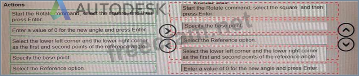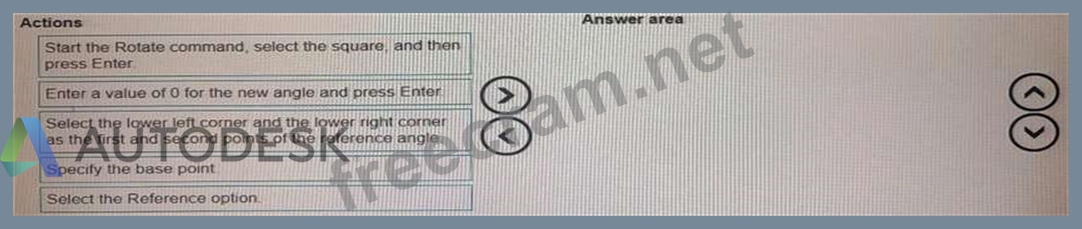 * 1- Start the Rotate command, select the square, and press Enter