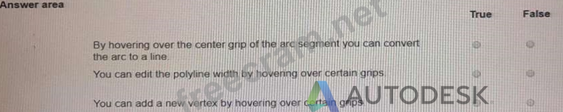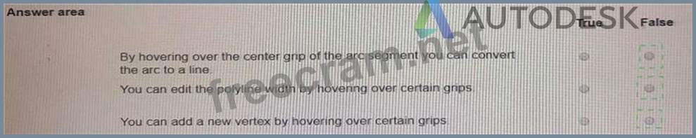 * Falseyou can add a new vertex by hovering over certain grips if they are edge grips or midpoint grips. However, if they are vertex grips or arc segment grips, you cannot add a new vertex by hovering over them2. Therefore, the statement is false.