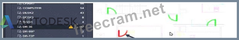 Exhibit. A CAD designer is using the AutoCAD Count tool to quantify the number of DR-36 door blocks that are in the drawing. A yellow error alert triangle appears next to the total count for the DR-30 block when selecting the item from the count list as shown in me exhibit. Which oi these conditions would result in the alert tor the block highlighted in red?
