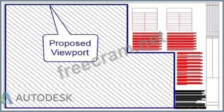 To create a viewport in AutoCAD that matches the blue-hatched area shown in the exhibit, you need to use the "Polygonal" option in the MVIEW command. The "Polygonal" option allows you to create viewports with non-rectangular shapes, which can be customized to fit any area, such as the irregular shape indicated. * Initiate the MVIEW command: * Type MVIEW or MV in the command line and press Enter. * Select the Polygonal option: * When prompted to specify the option, type P for Polygonal and press Enter. * Define the viewport shape: * Click to specify each vertex of the polygonal shape that matches the blue-hatched area in the exhibit. Continue clicking at each corner or bend in the shape until it is fully outlined. * Complete the viewport: * After specifying all vertices, press Enter to close the shape and complete the viewport creation. This method ensures that your viewport matches the exact shape of the desired area, providing a tailored view of the drawing within that boundary.