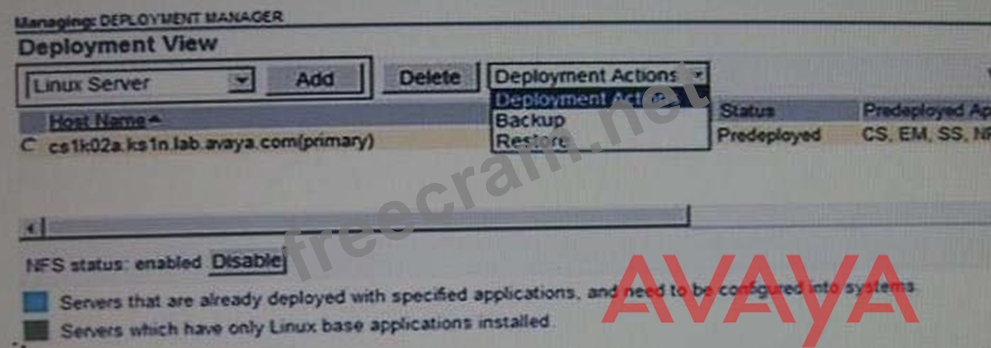 A technician is performing an upgrade of existing Communication Server 1000E Rls. 6.0 servers from the Deployment Servers. The system is pre-configured and the status is un-deployed. The server has been selected, but the Deployment Actions pull-down list does not include the choice to deploy.