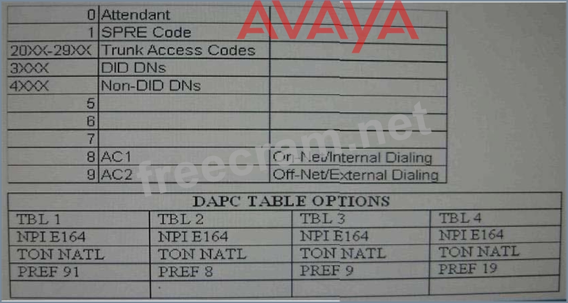 With reference to the DAPC Table options in the exhibit, which Dial Access Prefix on CLID (DAPC) table should be used?