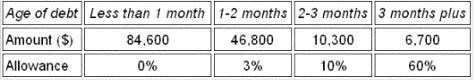 An aged receivables schedule shows the following position: