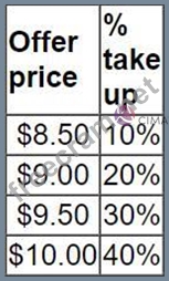Research into different offer prices has given the following data with regards acceptance by the shareholders at different prices: