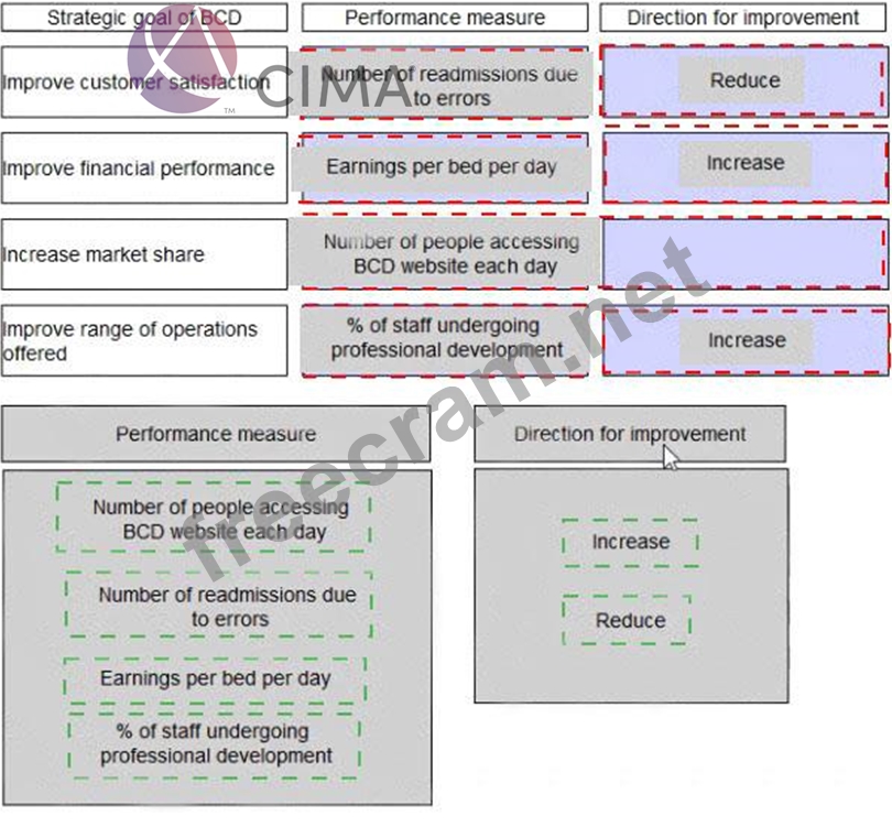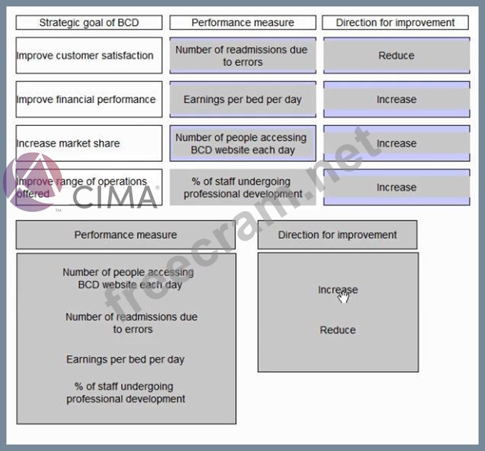Match the performance measure to the strategic goal and match the direction of improvement to each measure.