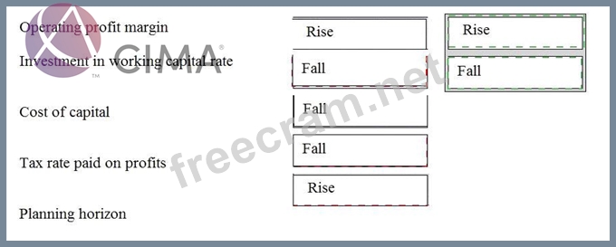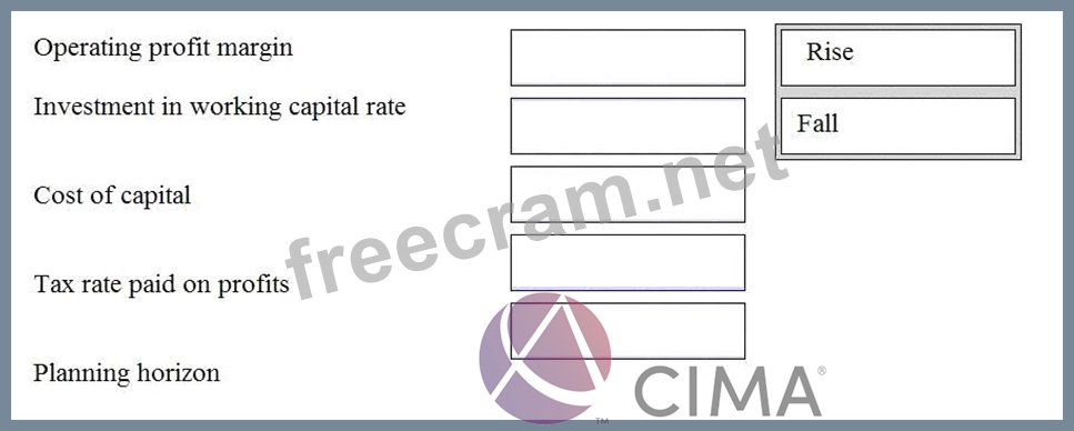 PPP wishes to increase shareholder value using the Seven Value Drivers identified in Shareholder Value Analysis (SVA). Place the correct direction of change next to each driver.