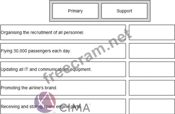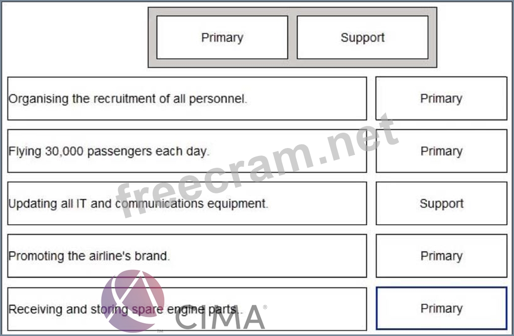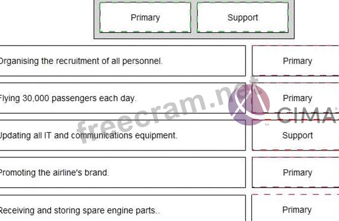 In accordance with Porter's Value Chain, select "Primary" or "Support" for each of the activities listed below: