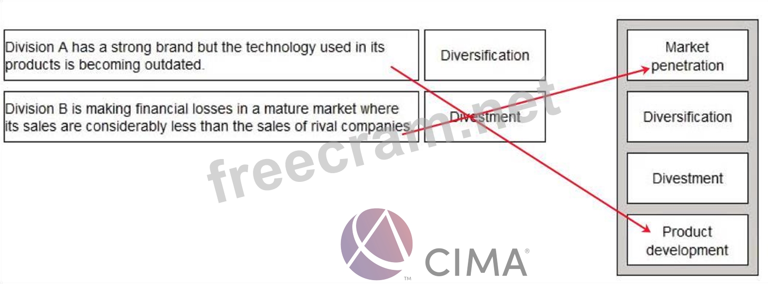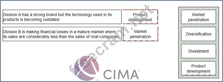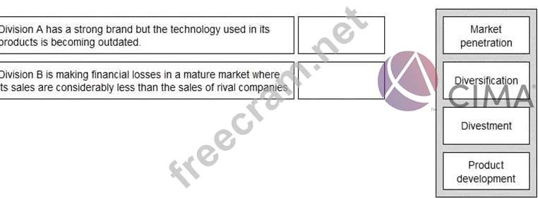 QR is a conglomerate with two divisions, A and B. Given the information below, select the most appropriate strategy for each division to implement.
