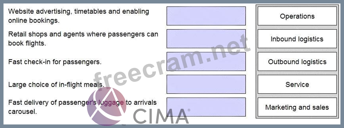 RST is a national airline that differentiates itself by the quality of service it provides to its passengers. Place the appropriate Value Chain activity next to each aspect of RST's service.