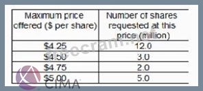 Company C invests heavily in Research and Development an need to raise $45 million to finance future projects. It has decided to use equity finance raised by a tender offer, The following tender offers have been received from potential investors: