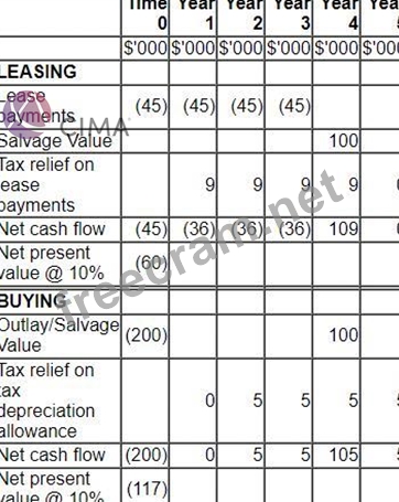 A company plans a four-year project which will be financed by either an operating lease or a bank loan.