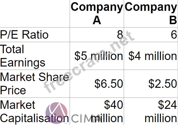 Question 50: A company has: * A price/earnings (P/E) ratio of 10. * Earni...