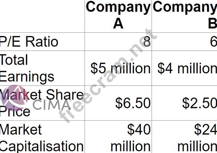 Question 42: A company has: * A price/earnings (P/E) ratio of 10. * Earni...