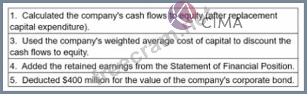 Company AEE has a 10 year 6% corporate bond in issue which has a nominal value of $400 million, which is currently trading at 95%. The bond is secured on the company's property The Board of Directors has calculated the equity value of Company AEE as follows;