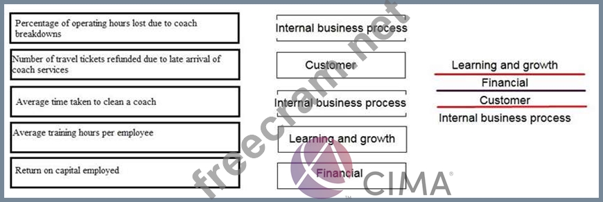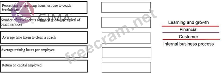 A Balanced Scorecard is being prepared for a coach passenger transport company. Place the correct perspective of the Balanced Scorecard against each performance measure.