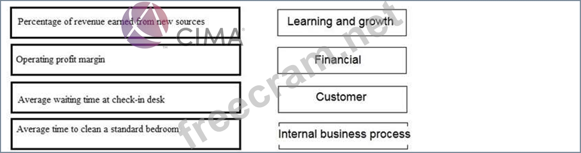 Place each performance measure against the correct perspective of the Balanced Scorecard for a company that operates a chain of hotels.
