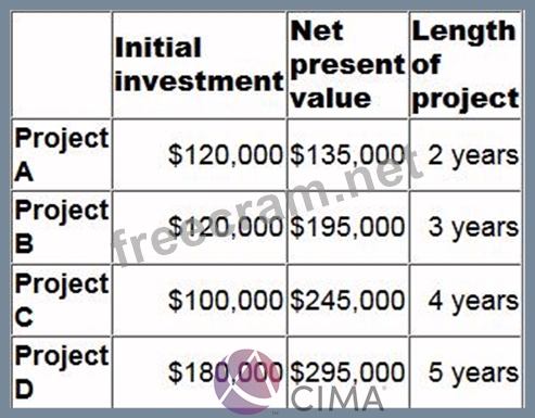 Question 64: A company is considering four mutually exclusive projects. T...