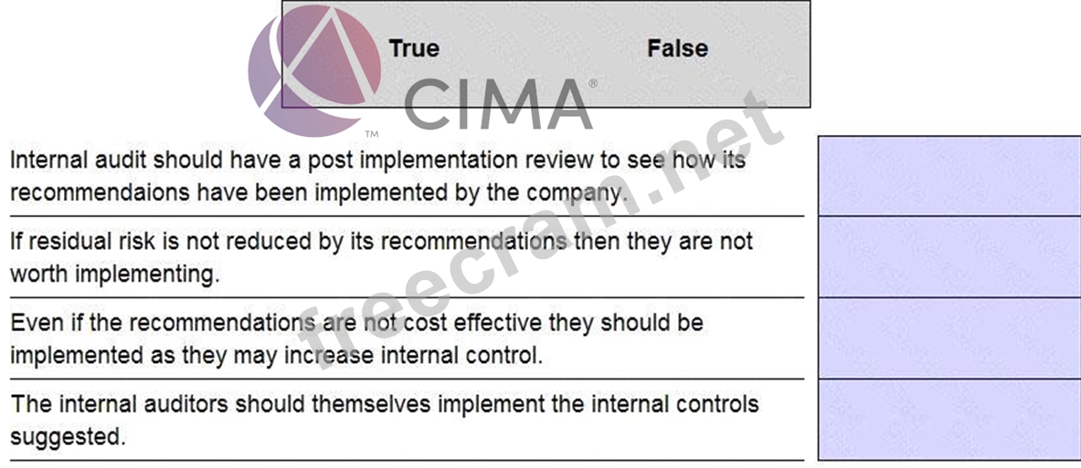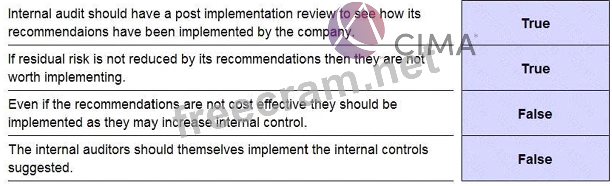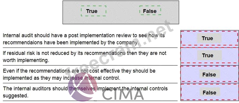 The internal audit department should always give a report at the end of its audit. This report is intended to be useful and help the company going forward. The report should always include any recommendations for improvements. Which of the following statements are true and which are false?