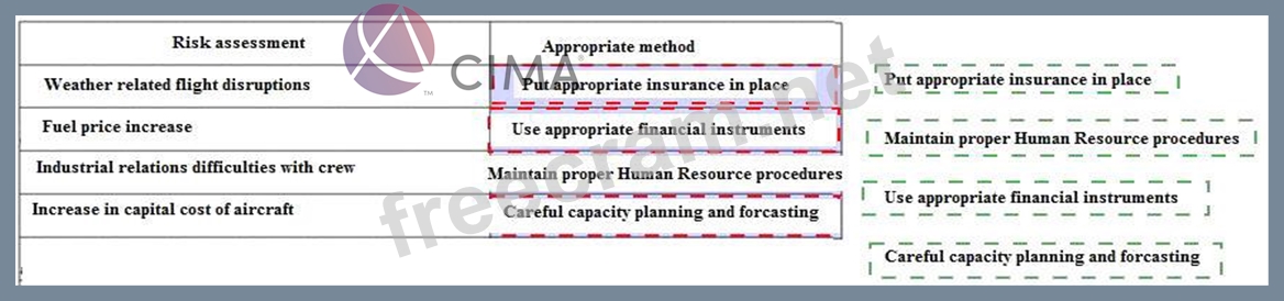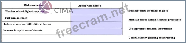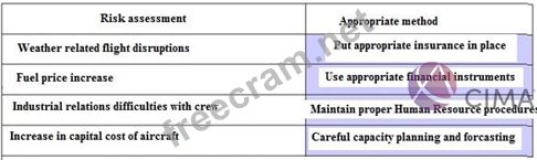 As part of risk assessment exercise for a low-cost airline you are requested to match the risks listed below with the most approriate method of minimising or dealing with each risk.