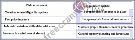 As part of risk assessment exercise for a low-cost airline you are requested to match the risks listed below with the most approriate method of minimising or dealing with each risk.