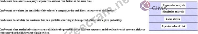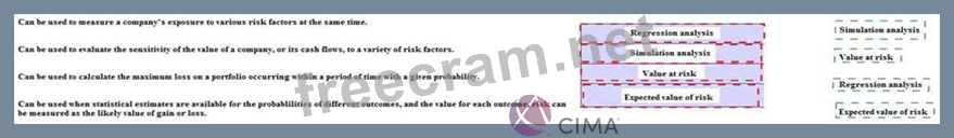 Match the descriptions shown in the boxes below with the method of quantifying risk exposure it best describes.