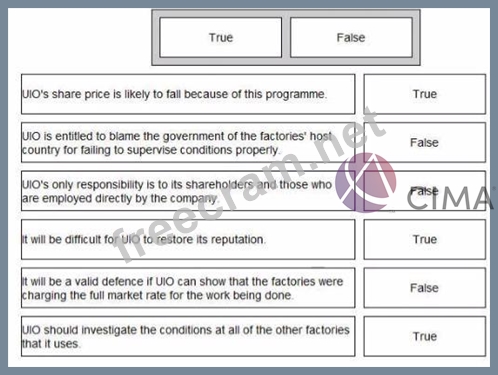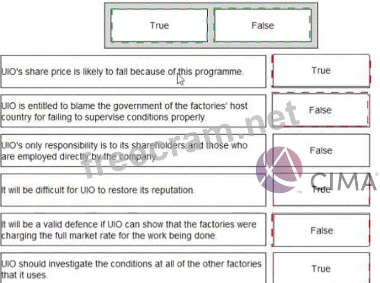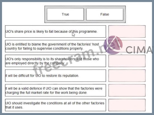 UIO designs clothes and pays third parties to manufacture them A recent television programme showed that two of the factories used by UIO were employing illegal immigrants whose status was used by the factory's owners to force them to work for low wages and in unpleasant and dangerous conditions. These factories were located in a developed country with strong labour laws Classify each of the following statements as true or false: