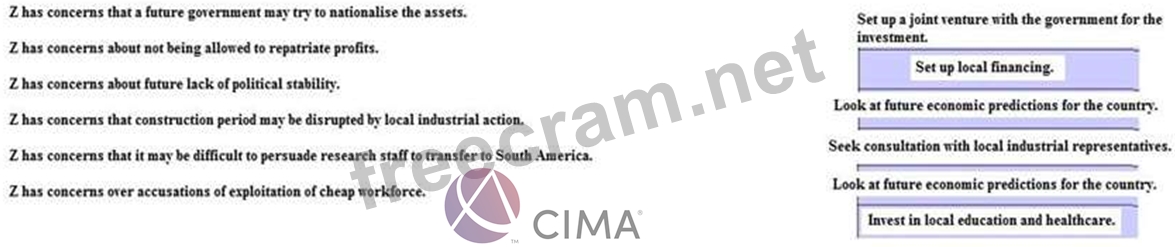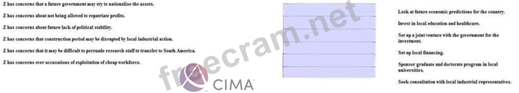 It is currently investigating the possibility of setting up a chemical and specialist production facility in South America. This would be a multi $billion investment. What steps should Z take to manage the following risks in this long term venture.
