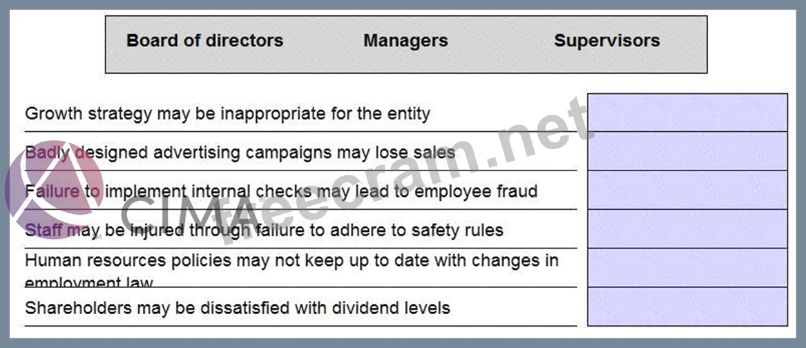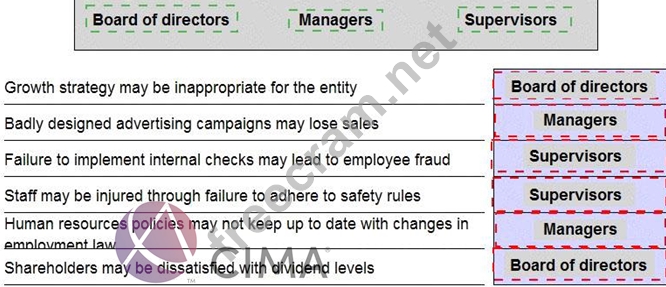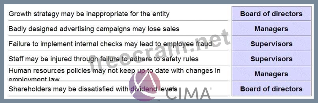 Select the most appropriate level of responsibility for managing each of the following risks.