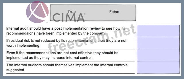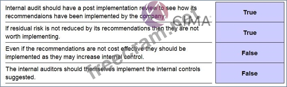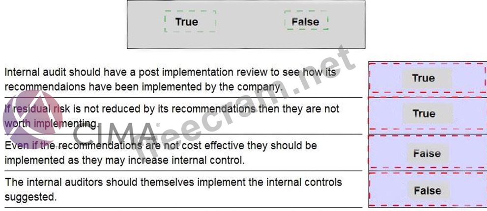 The internal audit department should always give a report at the end of its audit. This report is intended to be useful and help the company going forward. The report should always include any recommendations for improvements. Which of the following statements are true and which are false?