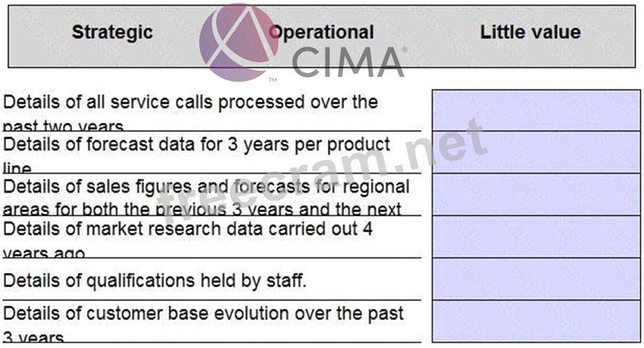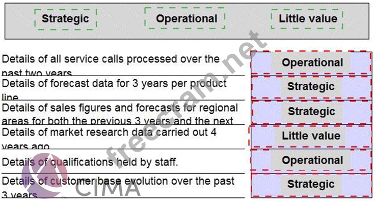 Classify each of the examples of information available to H's management as strategic, operational or of having little value.