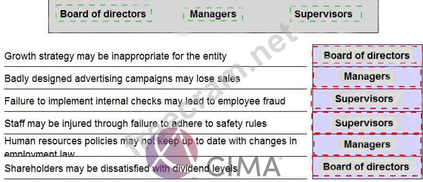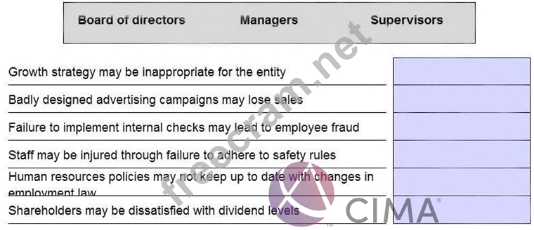 Select the most appropriate level of responsibility for managing each of the following risks.