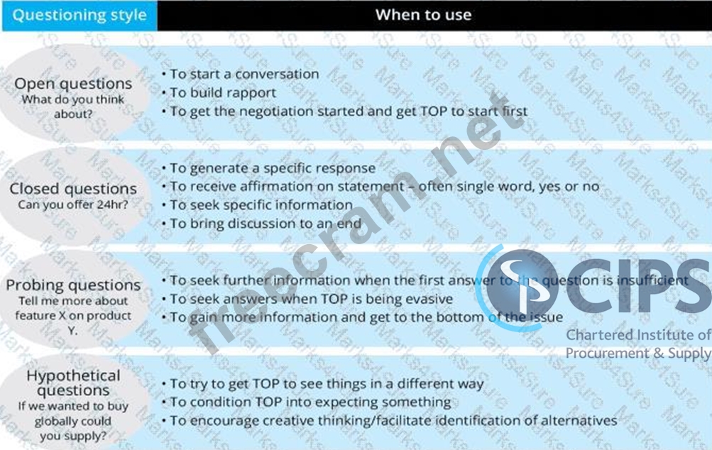 Question 77: A skilled negotiator will use a range of questioning techniq...