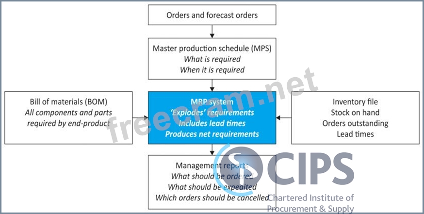 Material requirement planning (MRP) is a production planning and material (inventory) control system used in manufacturing. Objectives of MRP are to ensure materials are available for production while minimising inventory and to plan production and procurement activities. MRP process is described in the graph below: Reference: LO 2, AC 2.3
