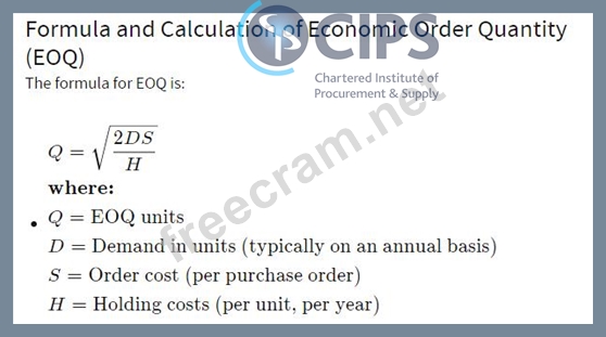Economic order quantity (EOQ) was developed in 1913 by Ford W. Harris and has been refined over time. The formula assumes that demand, ordering, and holding costs all remain constant. The EOQ minimizes the total annual inventory cost. EOQ formula is as follow: LO 2, AC 2.3
