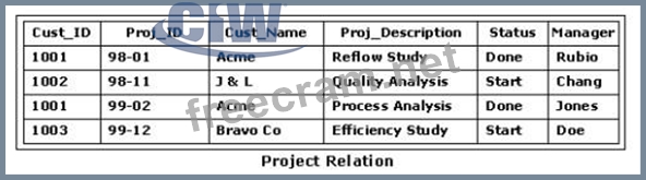 Question 20: The exhibit shows a relation for a company projects. Which c...