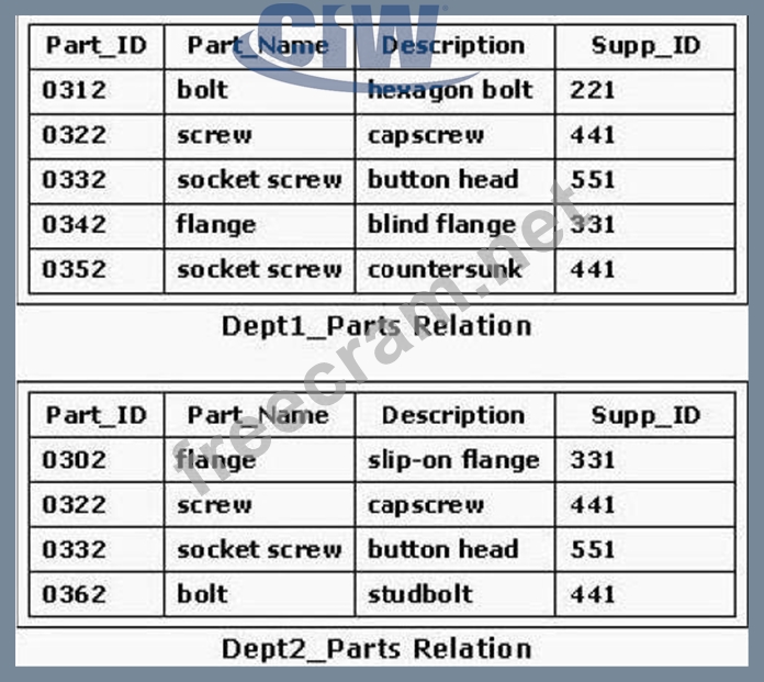 Question 87: Consider the Dept1_Parts and Dept2_Parts relations shown in ...