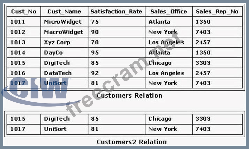 Question 85: Using the Customer and Sales_Rep relations shown in the exhi...