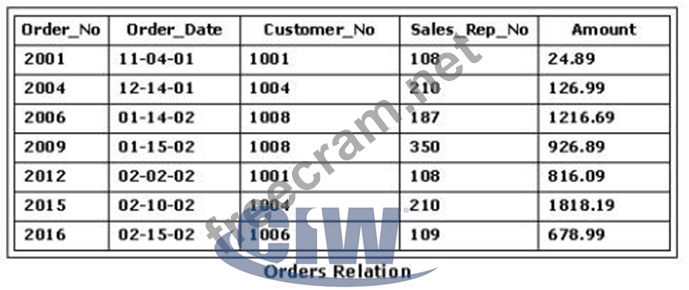 Question 83: Consider the Orders relation shown in the exhibit. Which of ...