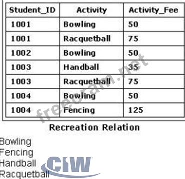 Question 93: Consider the Recreation relation in the exhibit. A data oper...