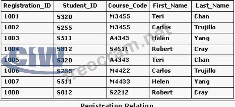 Question 41: Consider the Registration relation shown in the exhibit. Whi...